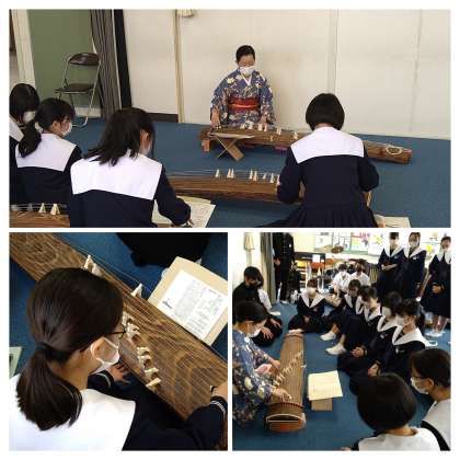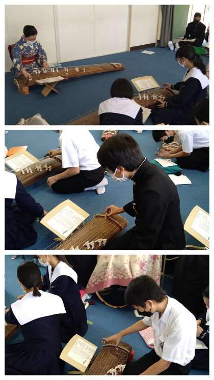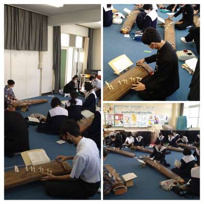 今日から3日間、音楽の授業の一環として、『箏』の先生をお招きして指導をしていただいています。