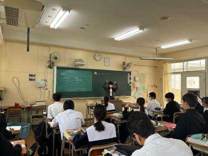 演示実験をしながら、同じ種類の電気には斥力が働くことや、違う種類の電気には引力が働くことを確認しました。
