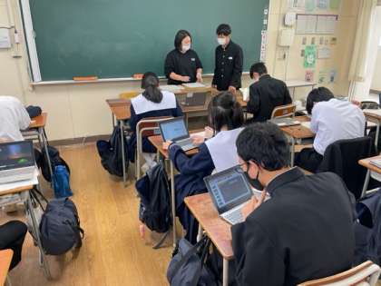 テスト計画が終わった生徒は、職場体験の内容をパワーポイントを使いまとめています。