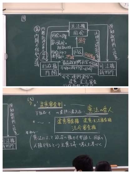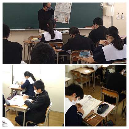 写真は、3年3組の社会科授業の様子です。新聞記事からの情報提供やワークシートを活用した授業でありました。今日の授業では、公民的分野で『三権分立』のしくみを学習していました。