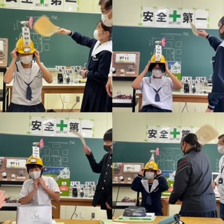 お手伝いの生徒2名が前で実験をしてくれました!