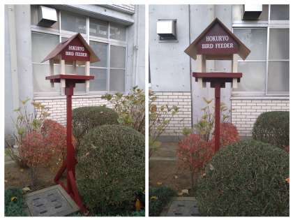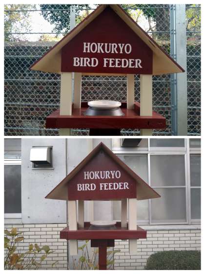とても立派なバードフィーダー(野鳥の餌台)が校舎裏の2箇所に設置されました。