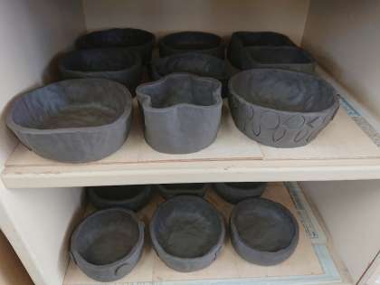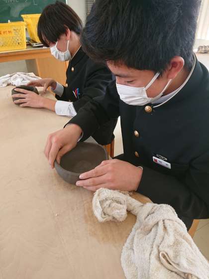 陶芸で器を作りました。柔らかい粘土に苦戦しつつ、頑張っていました。焼き上がりが楽しみです。