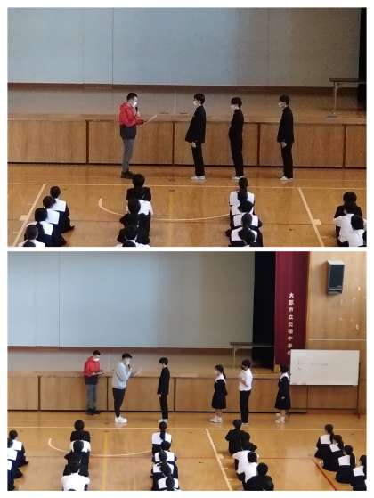 合わせて、技術科担当の先生より『木材コンクール』と題して優秀な作品を制作した生徒への表彰伝達がありました。