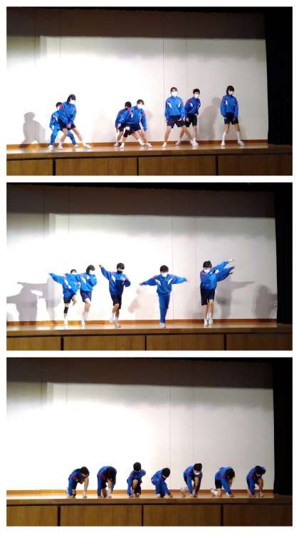 切れの良いダンス、楽しいダンス、面白いダンス、アクロバットなダンス等など、班での工夫が多くのところで感じました。「ブラボー!」