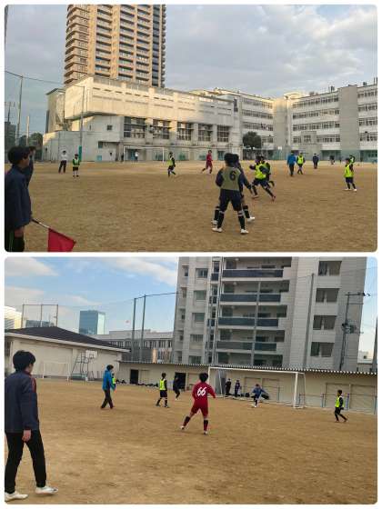 練習の最後には、現役の部員と紅白戦をして、年齢関係なくみんなでサッカーを楽しみました。