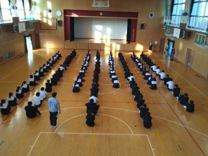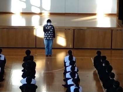 今朝は、2年生の学年朝礼がありました。担当の先生からは、始業式の前日に行われた『成人式のつどい』の式典に招待された時のお話がありました。