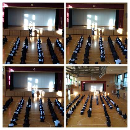 今朝は、2年生の学年朝礼がありました。担当の先生からは「持久走は苦手だったが、走り続けていく内に、少しずつ楽になってくる(セカンド・ウインド)」というお話から、日々の生活においても、はじめに何か始める時は、とてもエネルギーを使うが、一定期間やり続けると慣れてくる。