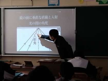 光の反射について学びました。「えー、そうなんや!」と新たな気づきがありました。