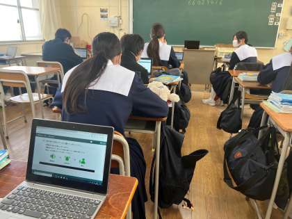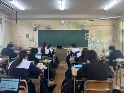 プログラムや端末の不具合のために、調査が進められない場合がみられましたが、英語科の先生が一生懸命対応しておられました。