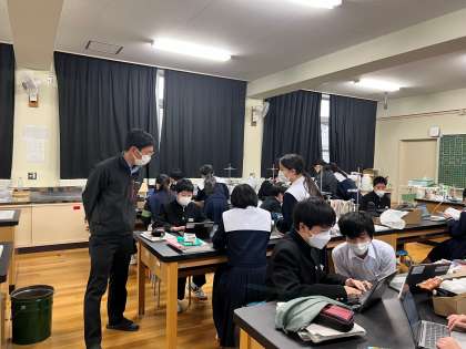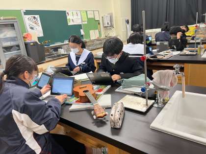 モノコードがあまりにも高価なので、費用対効果の面から、本校ではウクレレを各班で実験出来るように数を揃えました。スチール弦のモノコードより、ナイロンガットのウクレレの方が安全に実験できるので、中学校で実験するのには適しています。