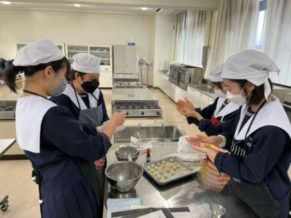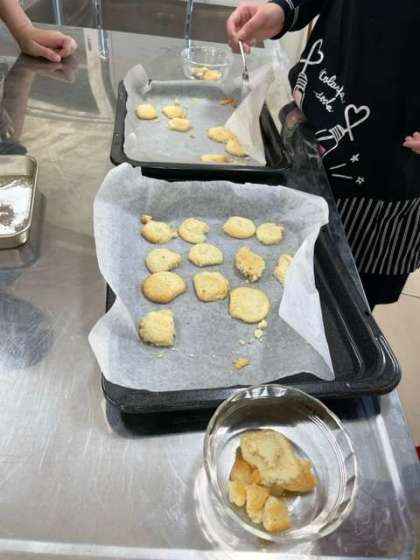 今回は、意見を出し合ってスノーボールクッキーを作りました。丸く焼くのは難しかったですが、ホロホロ食感で美味しくできました。