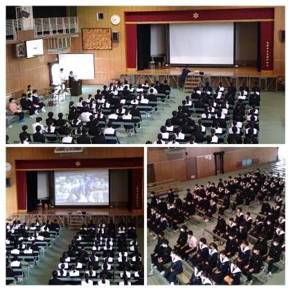 『お別れ会』の最後には、在校生で作成した思い出動画をスクリーンに映し出しました。