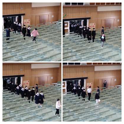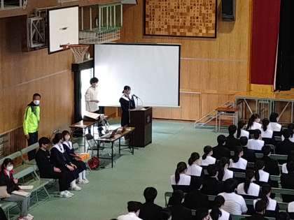 本日、明日、卒業式を迎える3年生へ、生徒会が中心となり『お別れ会』を企画し、各学年の在校生の協力のもと行うことができました。