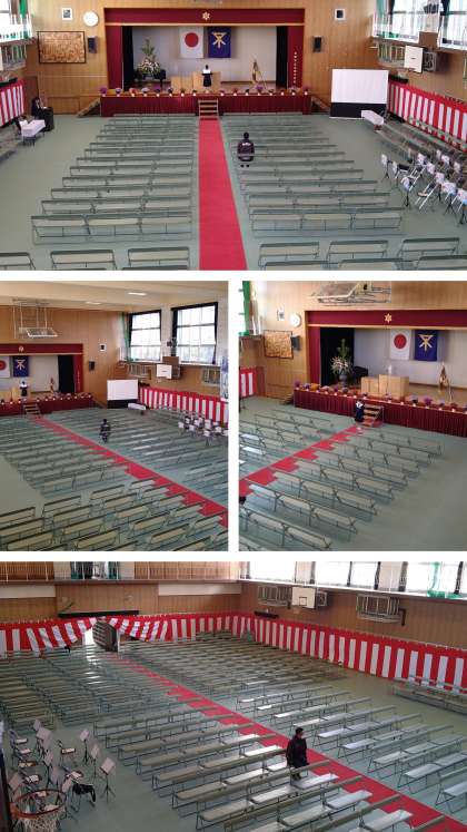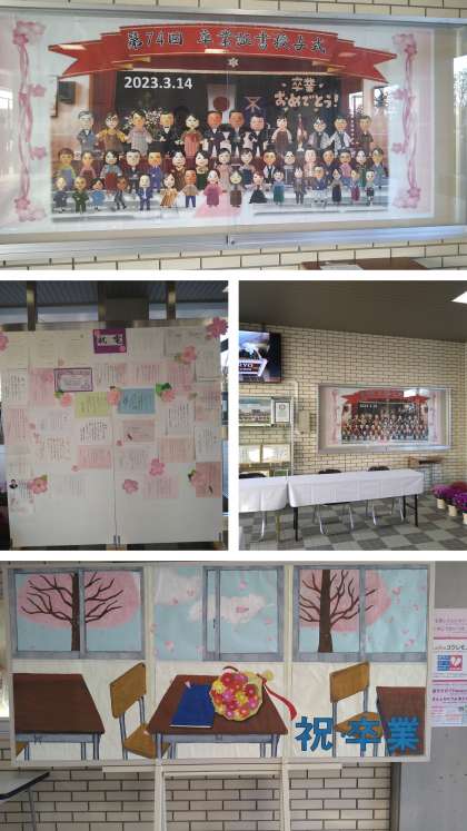 明日の卒業式は、10時00分開式ですが、卒業生の皆さんは9時30分までの登校してください。ご家族の皆さんは、9時45分までにご入場をお願いします。