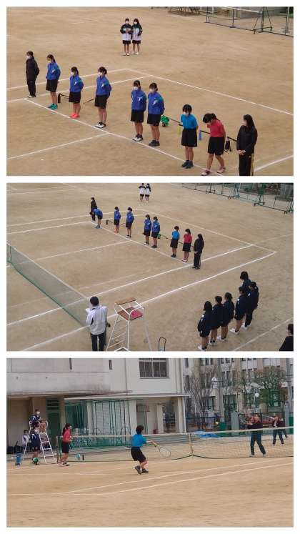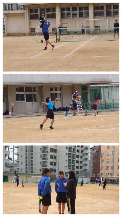 本日、運動場では硬式テニス部の大阪市春季総体が行われています。天候が少し気になりますが、選手たちは元気に活動しています。「がんばれテニス部!」