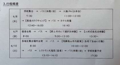 修学旅行は6月8日(木)〜10日(土)に、岐阜県郡上・飛騨高山方面に行きます。