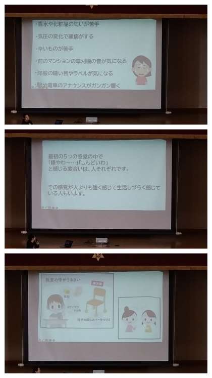 『集中しているのに聞くことが苦手とか、肌やにおいに敏感だとか、目には見えないけれど困っている人がまわりにいるかもしれません。ぜひ、今日のお話をいかして、一歩立ち止まって考えることができる、困っている人にそっと手助けができる、そんな人になってほしいと願っています。』(2年1組学級通信より引用)