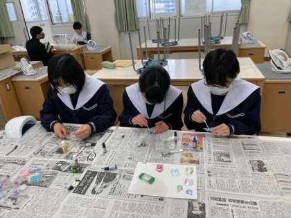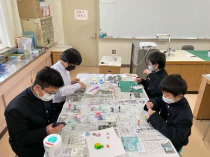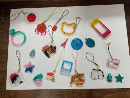 沢山の1年生が仮入部に来てくれました。開始が早かったので、今回はプラ板とレジン作品の両方を製作しました。個性あふれる作品の数々で、とても楽しい活動となりました。