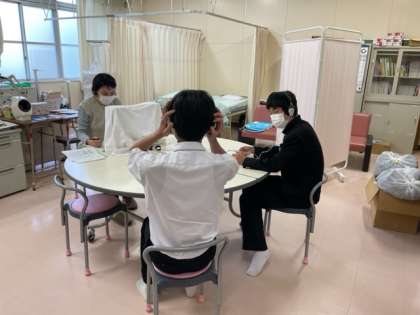 また、廊下には保健室の先生が作成された検査手順がモニターにて流されていました。