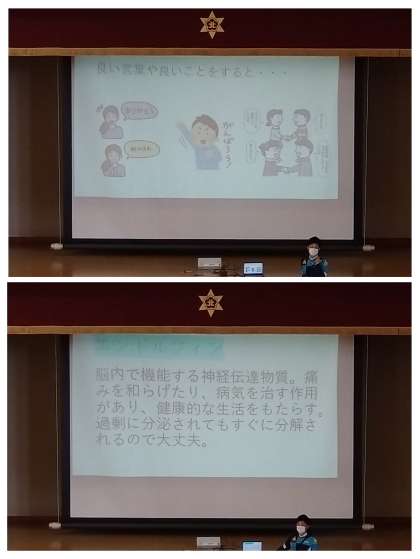 北稜中学校でも、みなさんが良い言葉や良いことを心がけることで、みんなが安全に安心して、そして健康に生活できるといいですね!という内容のお話がありました。