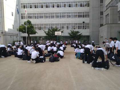 集合し始めました。晴れてます。「てるてる坊主ありがとう!」