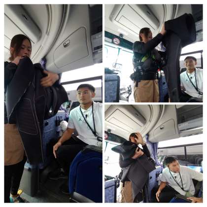 日本まん中センターに到着!ラフティングに準備をしています。