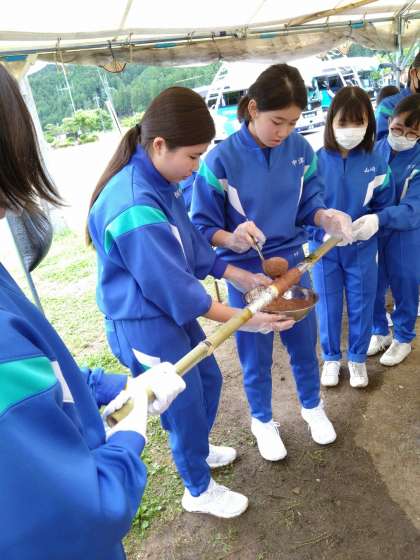 バームクーヘン二層目に!みんな職人に!