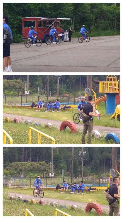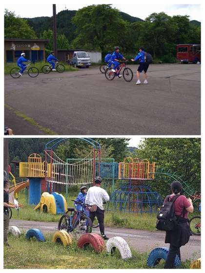 マウンテンバイク長い旅から帰ってきました。晴れて暑い中、かなり疲れた様子です。「おかえり〜」