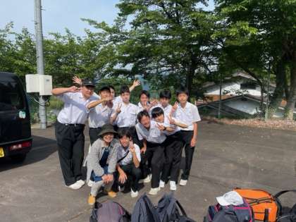 高山へ向かうバス車内は美味しい食事、川遊び、農業体験、花火など土産話で持ちきりです!