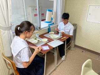 生徒会役員が給食の時間に音楽を楽しんでもらうために給食を食べながら仕事を行っています!
