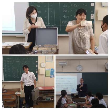 昨日、3年生の社会科授業の一環として、税理士の皆さん(4名)をお招きして『租税教室』が開催されました。