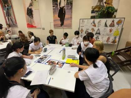 本日はオリエンテーションがあり、上田安子服飾専門学校の学生さんと共にデザイン画を描きました。皆とても楽しく、貴重な体験をさせていただき、充実した時間となりました。今後も、ホームページにて、随時お伝えしていきますので、ぜひご覧ください