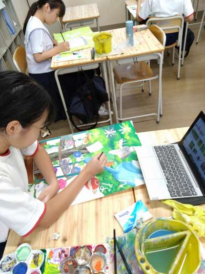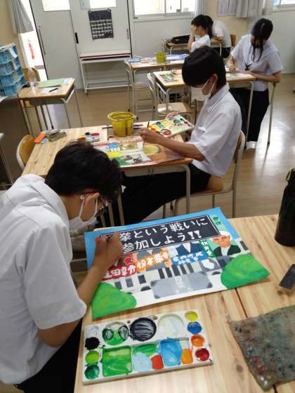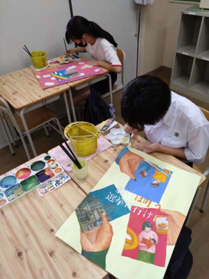 夏休み前から制作開始したポスターも、完成に近付いてきました。