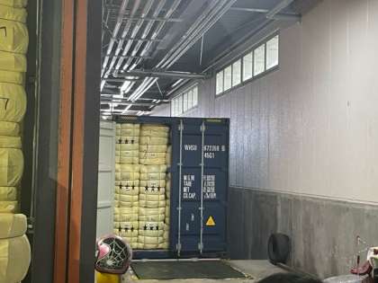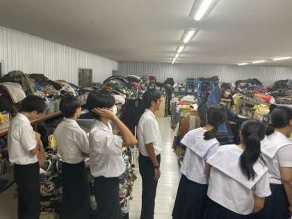 2枚目の写真では、仕分けされた衣類が、圧縮、梱包され、インドの自社工場へ出荷されるそうです。