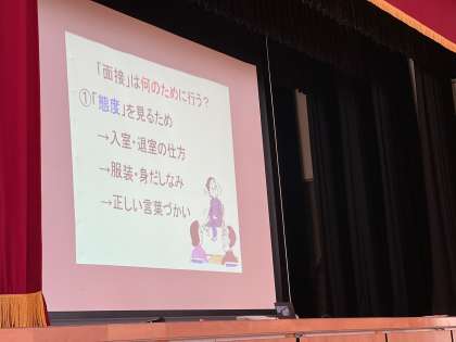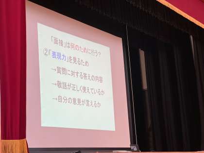 高校入試だけでなく、これからの人生で面接を受ける際に役立ててくださいという趣旨でのお話でした。