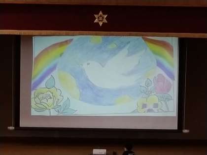 モザイク画の完成には、一人200羽の折り鶴が必要だと、ある先生が、ぼそっと言われました。「2年生の皆さん、やりがいがありますね!」