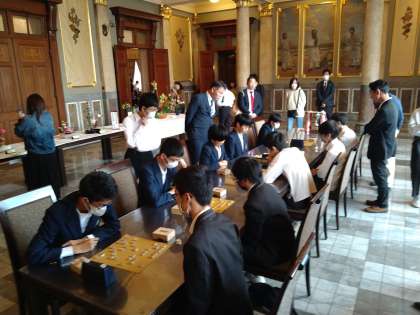 大阪市中央公会堂のあの有名な『特別室』では、将棋の団体決勝戦が行われていました。