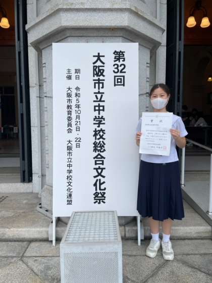 今回の総合文化祭 家庭手芸部門では、家庭科部や家庭科の夏休み課題での自由作品を展示しました。その中で代表生徒として、本校家庭科部の部長が表彰されました。