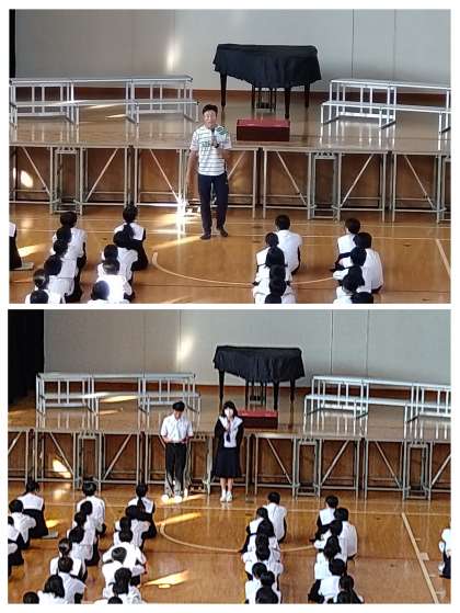 「今、振り返ると、私は中学校の時代が本当に楽しかったと思っています」「全員で何かを成し遂げることがとても楽しかったです」「みんなで協力して、ひとつのことに必死になって取り組める今の時代を大切にしてほしいと思っています」という内容のお話がありました。