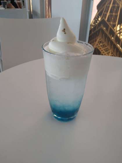 北稜中学校は、チーム『ブルー』です。ブルーのサワージュースを頼んで飲んでます。