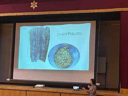 給食は不足しやすい栄養素が多く含まれる大切なものであること、バランスのとれた食生活のお手本となるものであること、和食の伝統を伝えるものであることなどをお話いただきました。