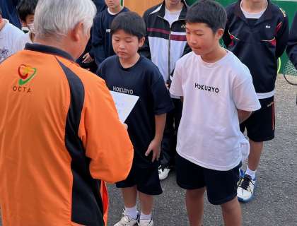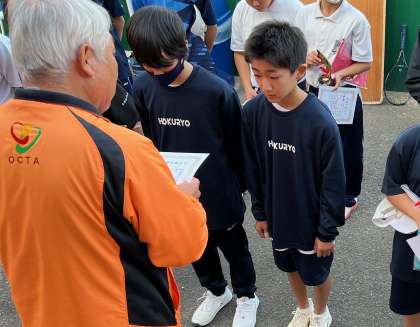 本日、長居庭球場において、大阪市中学生ダブルス大会が行われました。北稜中学校の生徒が優勝、準優勝で表彰されました。