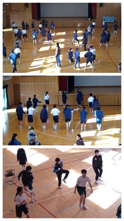 担任の先生も一緒にダンスしていました!「準備運動やりましたか?(激しい動きなのでケガのないように!)」