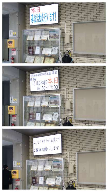 本校の玄関のモニターにも、募金活動の協力のお願いが映し出されてきます。