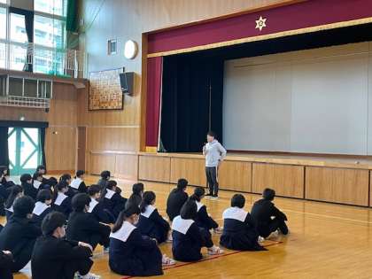 担当の先生からは、「自分の高校入試を振り返ると、特別選抜で高校に合格した。周りの人たちよりも早く合格したが、その後も登校していた。ある日、自分の何気ない発言がきっかけで、まだ受験を控えている人たちに配慮することの大切さに気づかされた。