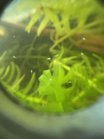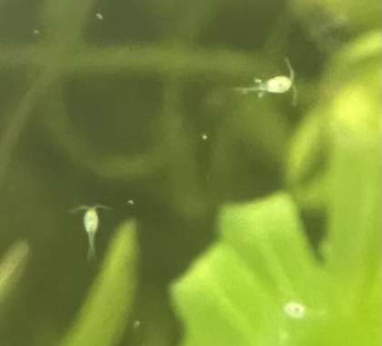 水槽の水にミジンコがいたので、ルーペで観察しました。ルーペだけでここまで見えます。