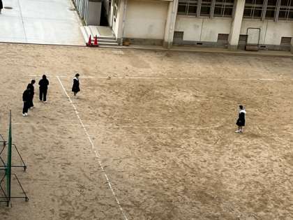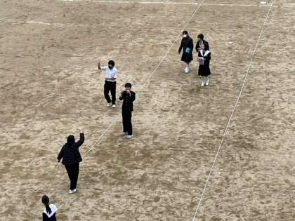 今まで習ってきたことを活用して校舎の高さを測っています。さてどうやって測るのでしょう?