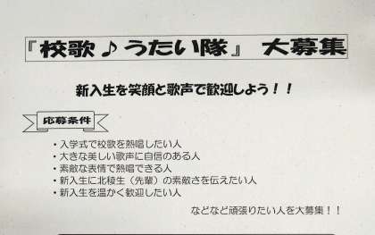 これから自主練習、全体練習、リハーサルを重ね、入学式当日に素晴らしい歌声を響かせてくれることを期待しています。
