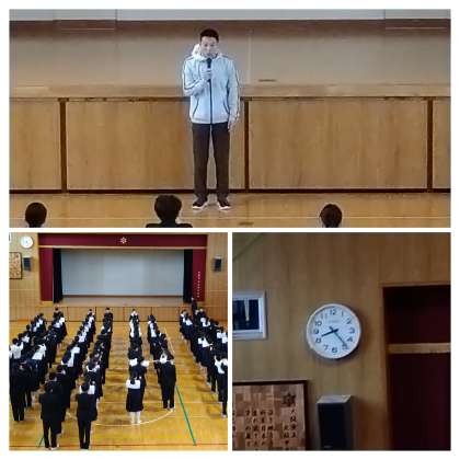 残り2週間で卒業式ですね。3年間の集大成として、立派な立ち居振る舞いで感謝の気持ちを伝えてほしいと思いますという内容のお話がありました。